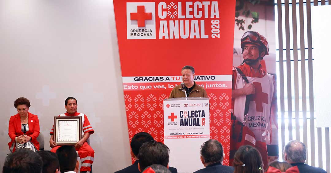 El gobernador Julio Menchaca Salazar encabezó el arranque de la Colecta Anual 2026, “Esto que ves, lo hacemos juntos”, de la Cruz Roja Mexicana en Hidalgo, destacando la importancia de la solidaridad ciudadana para fortalecer la atención a emergencias y servicios de salud en la entidad.