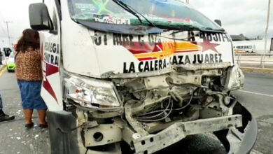 Deja 12 heridos choque entre dos camionetas del transporte público