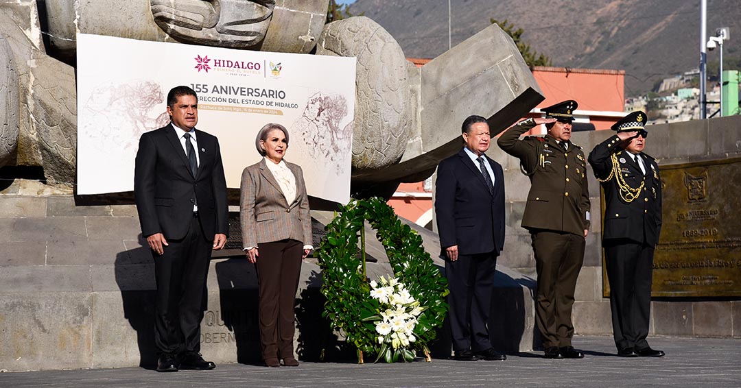 El gobernador Julio Menchaca Salazar encabezó la ceremonia por el 155 aniversario de la erección del estado, donde afirmó que cada hidalguense forma parte un pueblo de lucha y trabajo que ha sabido salir adelante ante las dificultades.