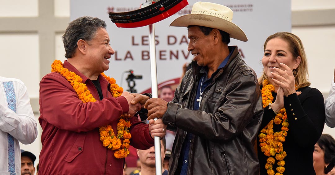 Por otro lado, el gobernador encabezó la entrega simbólica de tarjetas bancarias de los programas “Bienestar de Madres Solteras” y “Bienestar y Desarrollo”, así como de apoyos económicos a mujeres en situación de violencia de género y para el bienestar físico de las mujeres.