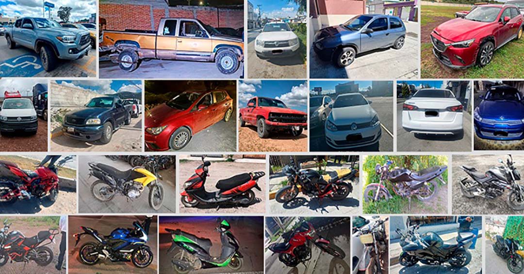 Durante la última semana, la Secretaría de Seguridad Pública de Hidalgo (SSPH) logró la recuperación de 30 vehículos con reporte de robo vigente: 12 automóviles, 15 motocicletas y tres tractocamiones.