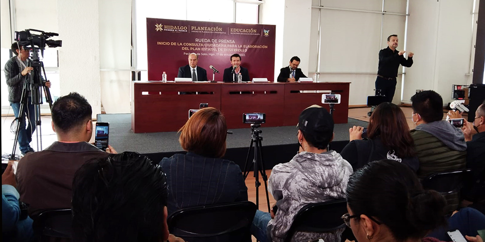 El secretario agregó que también se realizarán foros focales con especialistas, funcionarios, cámaras empresariales, organizaciones civiles y grupos vulnerables, con la finalidad de incorporar todas las voces y sintetizar en el Plan Estatal de Desarrollo las necesidades que enfrenta la sociedad hidalguense.