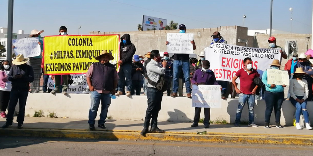 Pobladores de diversas comunidades del Valle del Mezquital se manifestaron este martes en el Congreso de Hidalgo para exigir el cumplimiento de una minuta firmada por cinco diputados de Morena y uno del PAN, quienes se comprometieron a presentar un exhorto a las secretarías de Obras Públicas y de Finanzas del gobierno estatal para el redireccionamiento de recursos destinados a obras en la región.