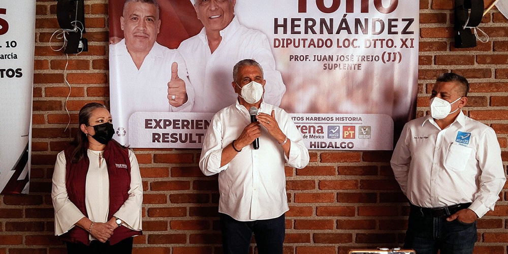 Hernández y Trejo también estuvieron acompañados por Rosa María Rueda, candidata a diputada local por el distrito IX Metepec, y Jorge Hernández Araus, aspirante a la diputación local por el distrito X Apan.