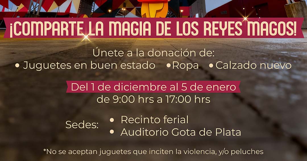 Como parte de esta iniciativa, del 8 al 19 de diciembre y del 3 al 5 de enero se recibirán donaciones en el recinto ferial, acceso D, en un horario de 9:00 a 17:00 horas. Asimismo, el auditorio Gota de Plata funcionará como centro de acopio desde este lunes y hasta el 5 de enero, también de 9:00 a 17:00 horas.