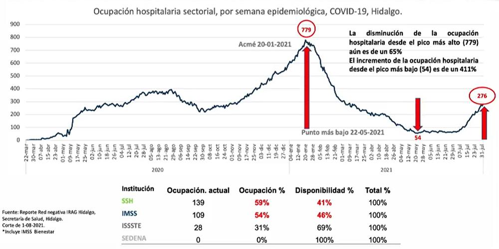 En su conferencia de prensa semanal, el funcionario estatal hizo una comparación entre los 11 meses que la cepa original de SARS-CoV2- tardó en alcanzar el pico máximo de mil 500 casos activos, con los 32 días que a las variantes del coronavirus les ha tomado superar los 2 mil casos.