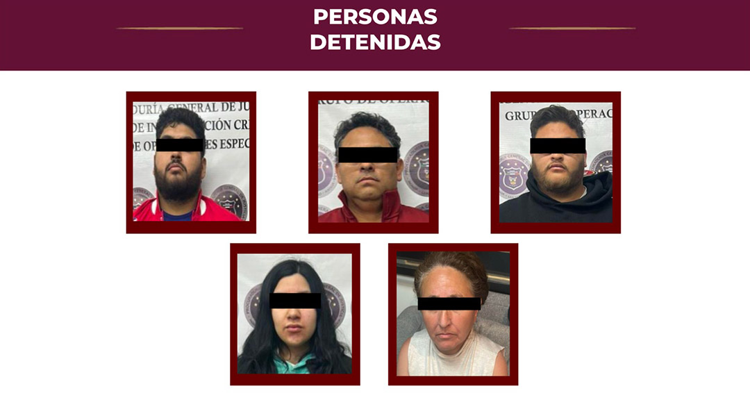 La Procuraduría General de Justicia del Estado de Hidalgo (PGJEH) informó que los detenidos fueron identificados como M. L. M. E., E. D. R. M., R. Y. R. M., A. G. E. y R. E. R. G., y reveló que este último es empleado de la empresa pública del Estado.